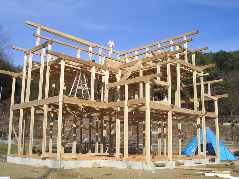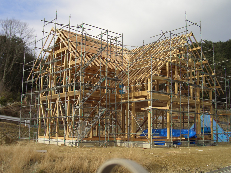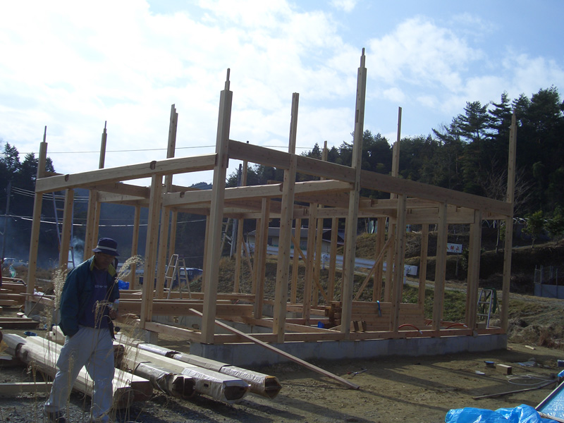 棟上げは、近所で知り合った大工と、淡路の時に知り合った年の近い大工に手伝ってもらった。